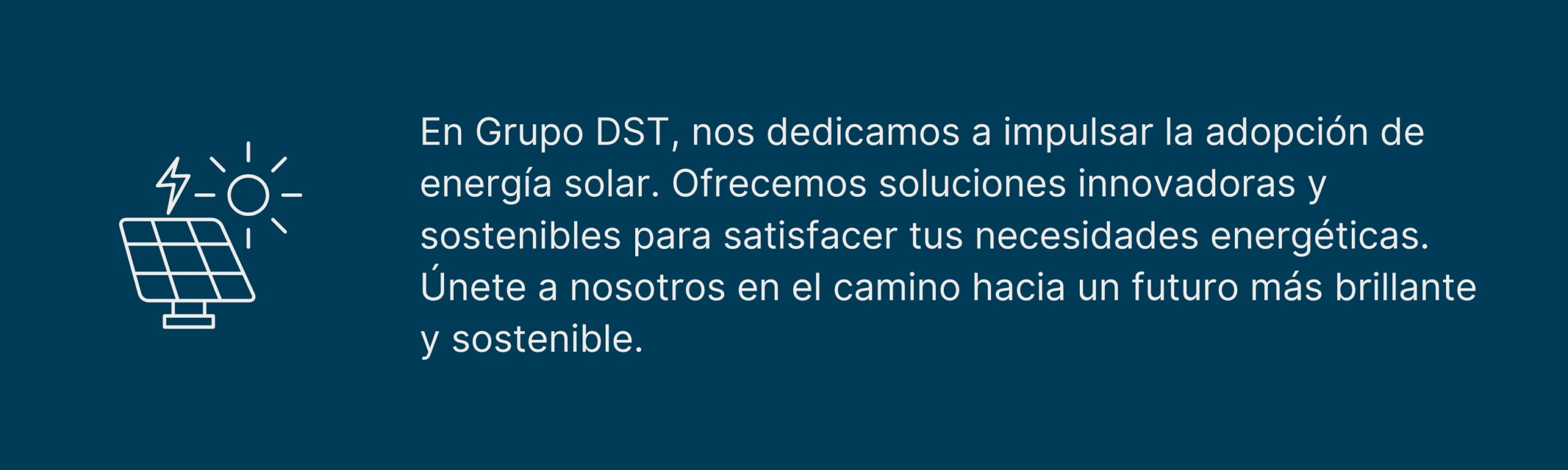 - Convierte tu hogar en un oasis de energía sostenible con nuestros paneles solares. Diseñamos sistemas personalizados para satisfacer tus necesidades energéticas y reducir tus facturas de electricidad. Únete a la revolución solar y haz que tu hogar brille con Grupo DST.